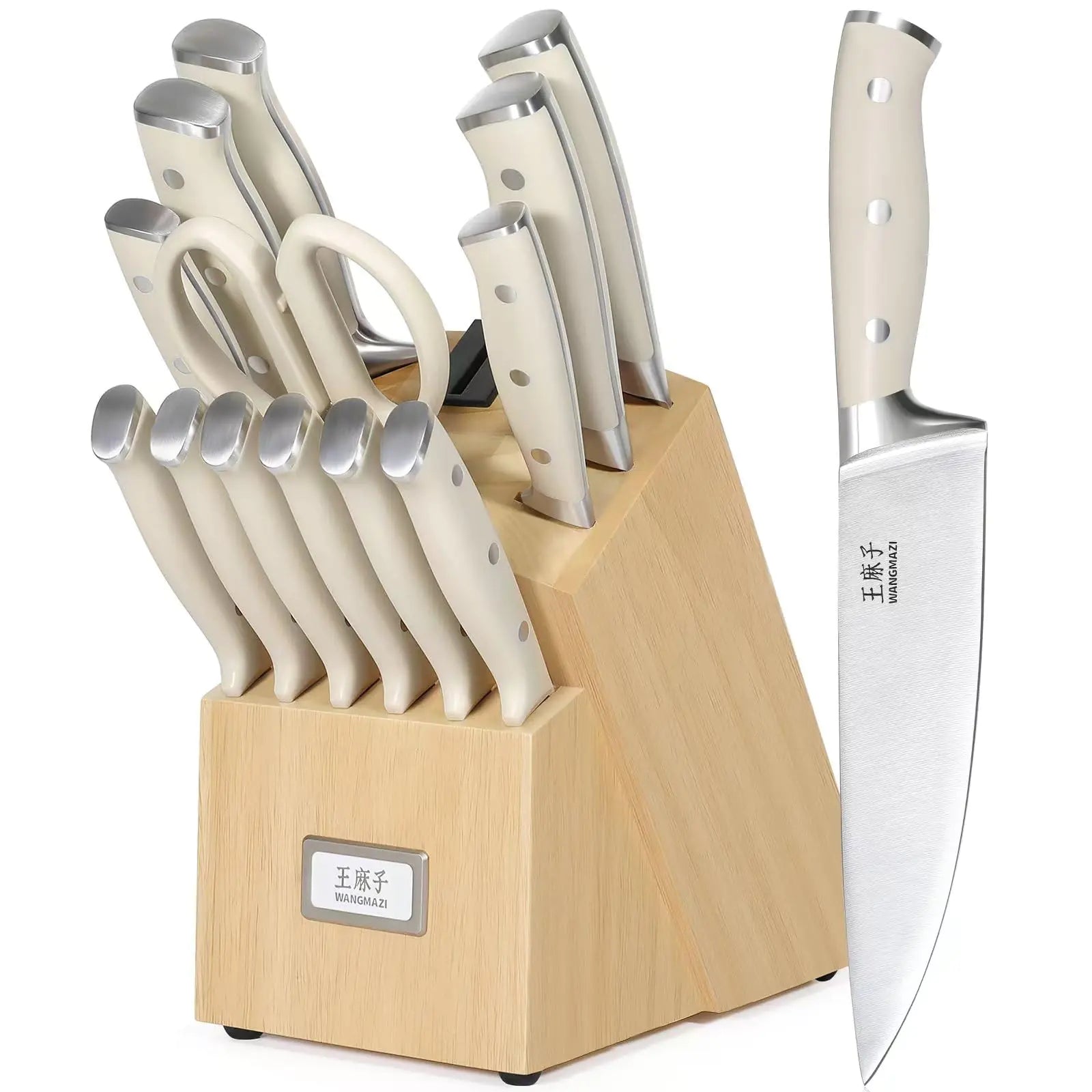 WANGMAZI Premium Chef Knife SetHigh Carbon Stainless Steel ForgedSharp Knife Set Triple-rivet Ergonomic HandleKnives Set for KitchenOver 300 Years of Masterful Craftmanship(Ivory15PCS)