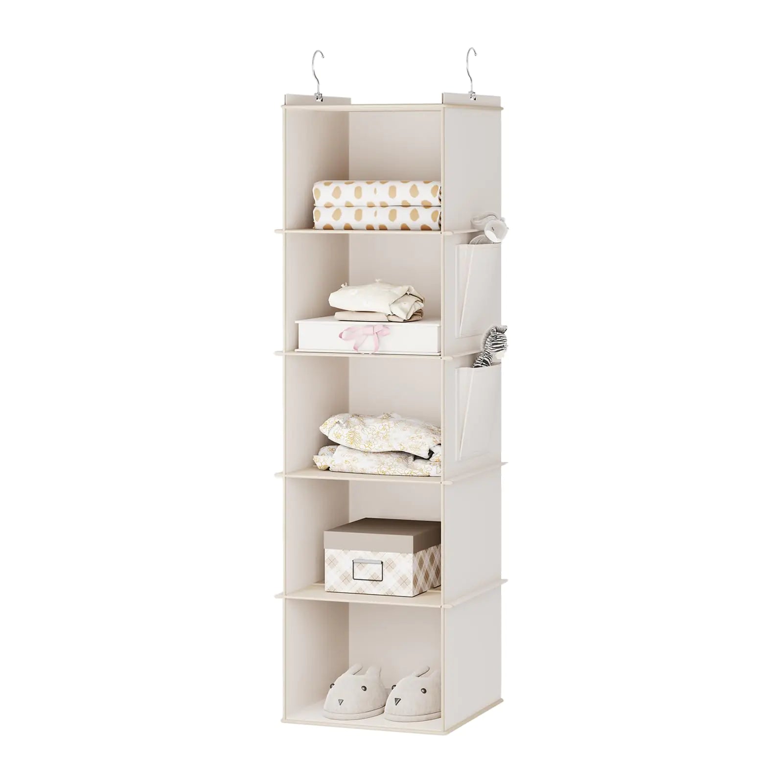 YOUDENOVA Hanging Closet Organizer 5-Shelf Closet Hanging Storage Shelves Beige